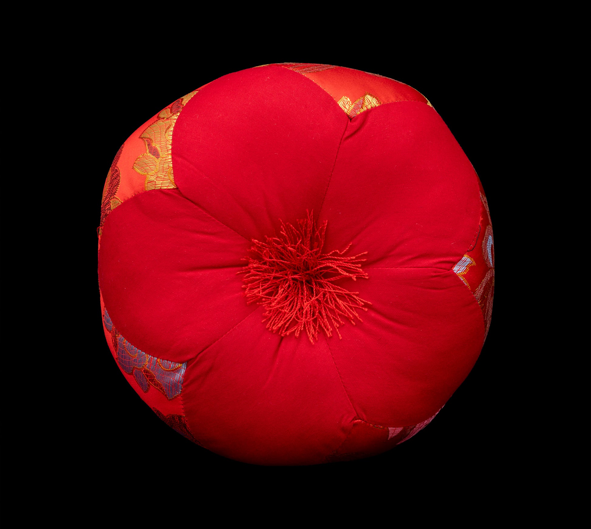 Elevate the display of your singing bowl with this beautiful, handcrafted pillow cushion. Made from a mix of durable brocade and cotton fabrics, it features an elegant red floral design with a decorative center tassel. The round shape and dense filling provide a stable base, suitable for any 5-8 inch diameter singing bowl