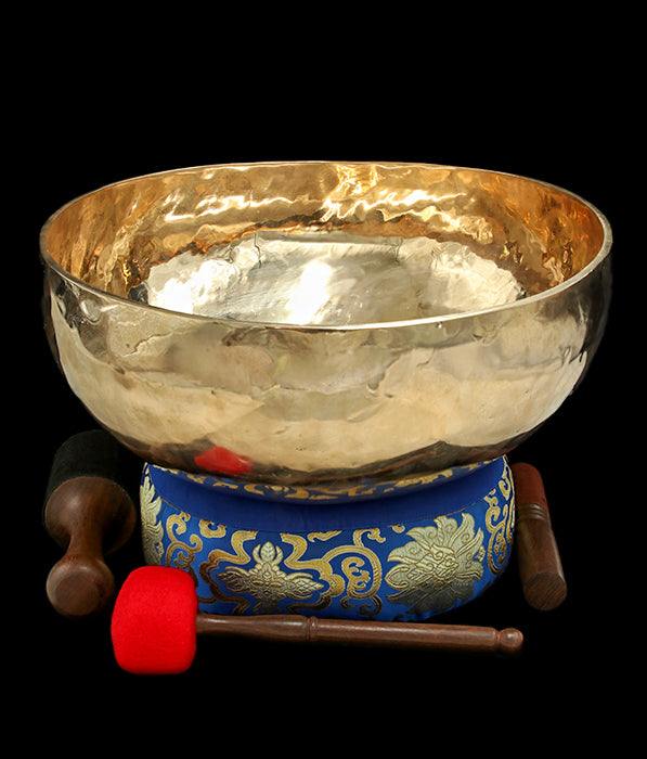 17" Diameter, concert pitch 2nd Octave C (65Hz). Handmade bronze in Nepal with a polished finish.