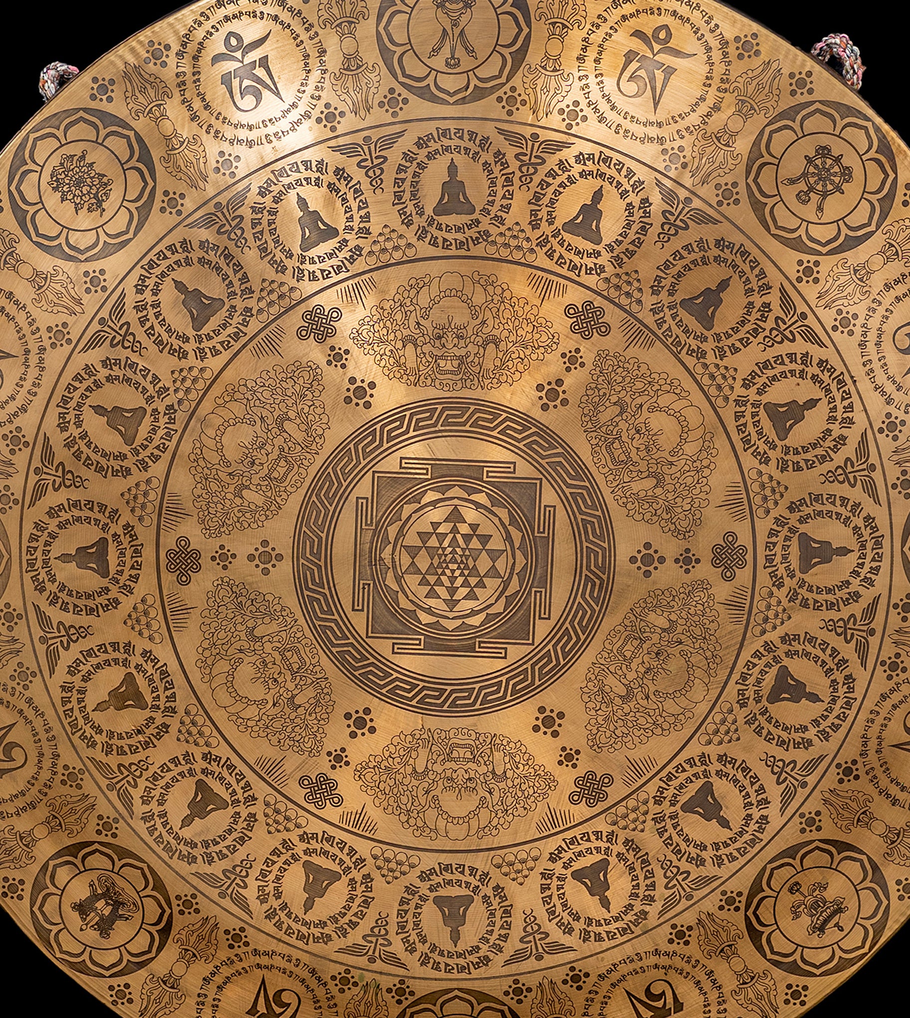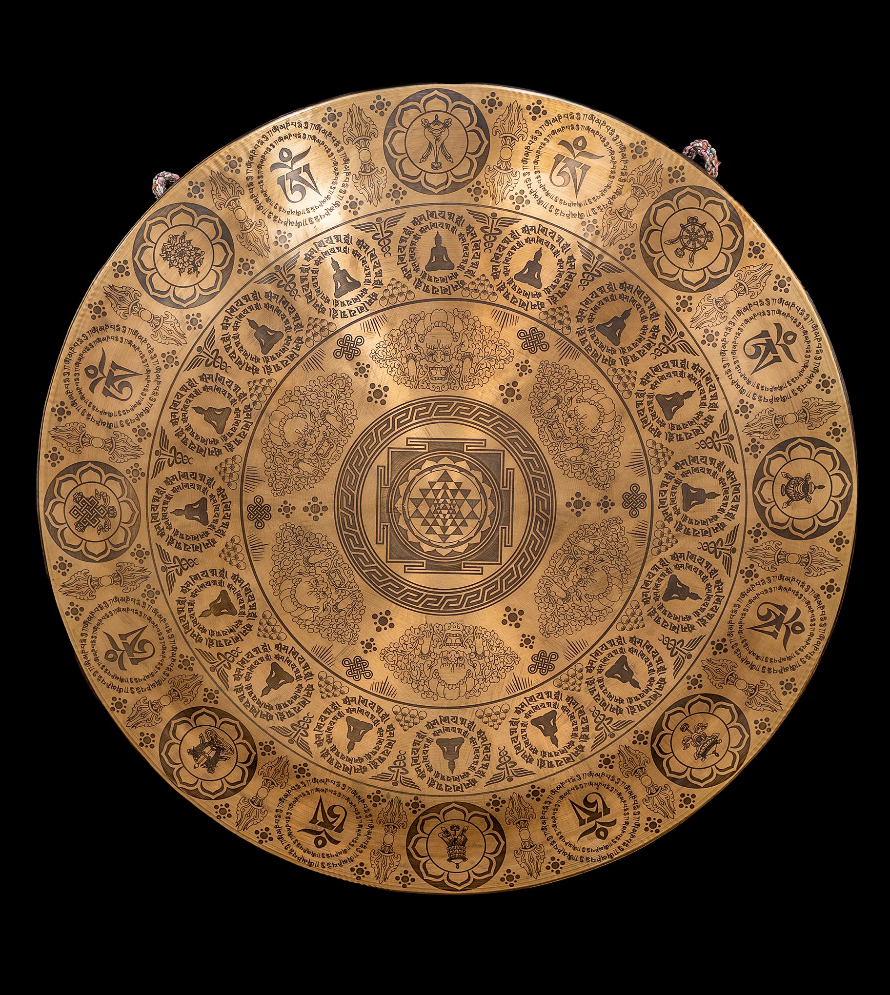 Tibetan Sacred Gong Etched with Sri Yantra symbols